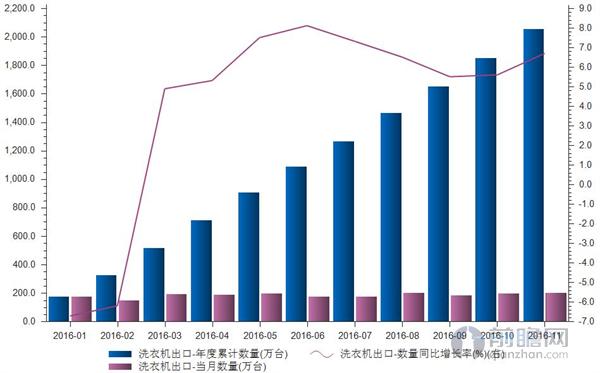 據前瞻數據庫數據顯示,2016年1-11月我國洗滌機械出口累計2055萬臺,累計同比增長6.7%。2015年12月中旬,美國家電制造商惠而浦舉起反傾銷大棒,該公司向美國商務部和國際貿易委員會提出申請,請求對韓系廠商三星、LG的大容量洗滌機械產品進行反傾銷調查。值得注意的是,這些洗滌機械的原產地均是中國。隨后,美國商務部與國際貿易委員會接受惠而浦的申請,對中國生產的洗滌機械開展了反傾銷調查。
